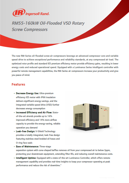 新型 RM 系列微油螺旋式空壓機利用先進的壓縮機核心和變速驅動器,在任何壓縮空氣負載下都能達到卓越的效能和可靠性標準。 最佳化的轉子線形和標配的IE3 & IE5 優秀效能馬達提升了效率,進而降低能源成本並減少營運支出。 RM 系列空壓機配備具有強大遠端管理功能的 Luminance 系列智慧型控制器,可提高生產力,讓您完全放心。