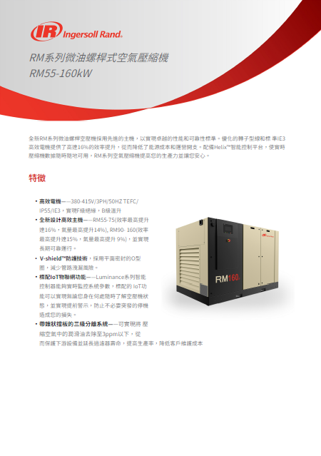 RM 系列 55-160 kW 微油螺旋式空氣壓縮機